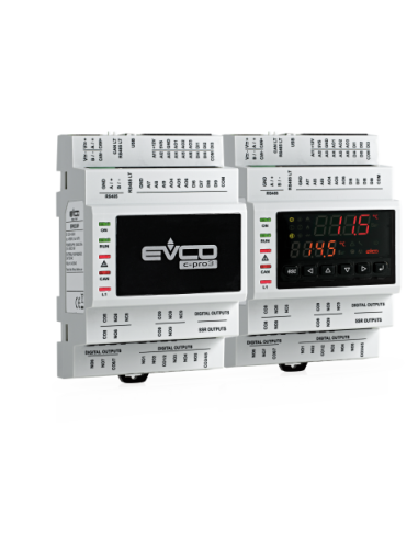 - un pilote éventuel pour vannes de détente électroniques de type pas à pas bipolaire pour chaque circuit (EVDRIVE03, disponible avec interface utilisateur intégrée ou dans la version borgne)