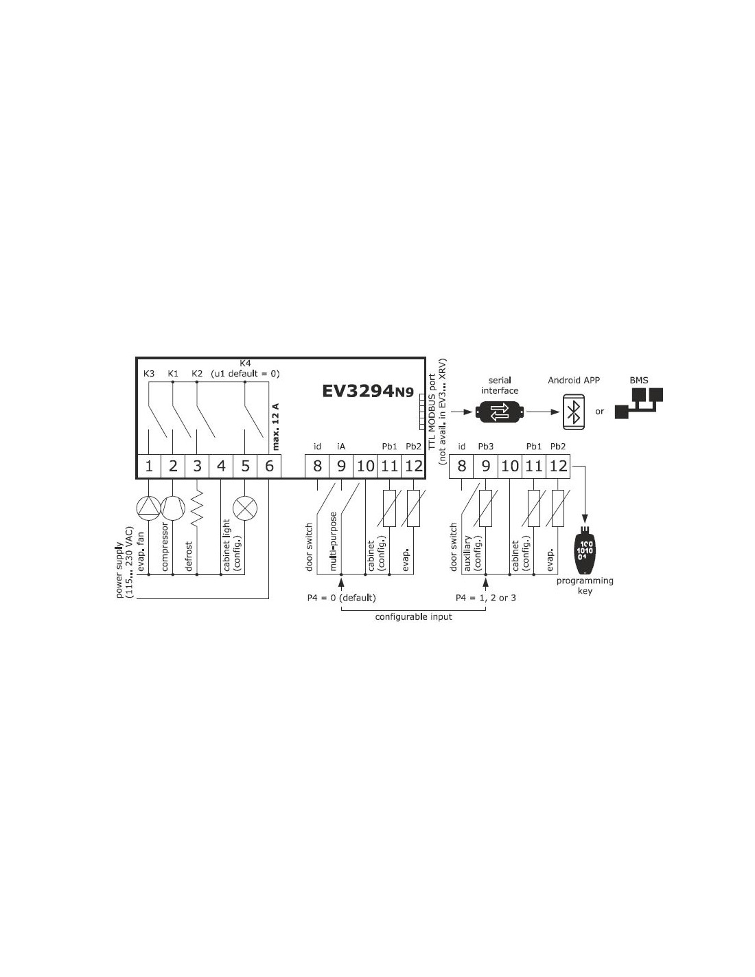 À travers le port TTL, il est possible de brancher des modules plug-in optionnels alimentés par le même dispositif de contrôle. Un module avec horloge est disponible pour activer les fonctions élémentaires liées au temps réel (dégivrage RTC et enregistrement 9 alarmes), tandis que pour les fonctions avancées relatives à la traçabilité des données HACCP, avec les modèles EV3292 et EV3294, est disponible une interface Bluetooth BLE 4.0 (EVlink) avec visualisation des données et accès à la machine depuis des dispositifs mobiles. L'Horloge et le Bluetooth sont disponibles également dans la version intégrée.