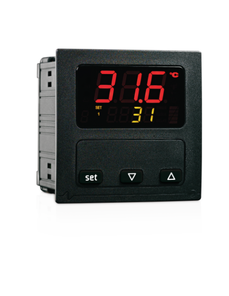 Ils sont fournis dans la version compacte, dans le format 96 x 96 mm ; l'interface utilisateur est constituée par un double afficheur personnalisé ayant des dimensions supérieures à la moyenne (avec un point décimal et des icônes fonctions), par trois touches, et elle garantit un degré de protection IP54 pour faciliter le nettoyage.