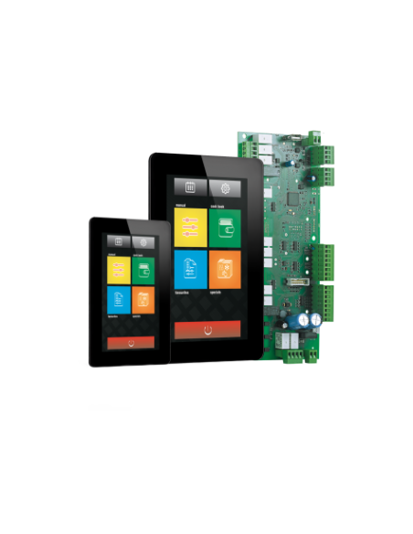 Il est disponible dans la version splittée avec interface utilisateur composée d'un afficheur graphique TFT tactile capacitif en verre de 5 pouces (M) ou 7 pouces (L), 65000 couleurs, résolution 800 x 480 pixels et indice de protection IP65 pour faciliter le nettoyage.