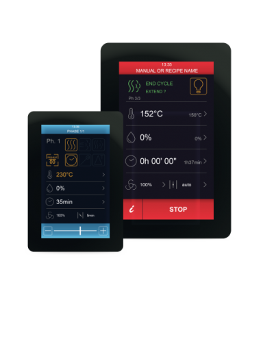 Dispositifs de contrôle pour fours combinés pour la gastronomie et la pâtisserie, avec afficheur graphique TFT tactile en couleur de 5 ou 7 pouces, dans la version splittée